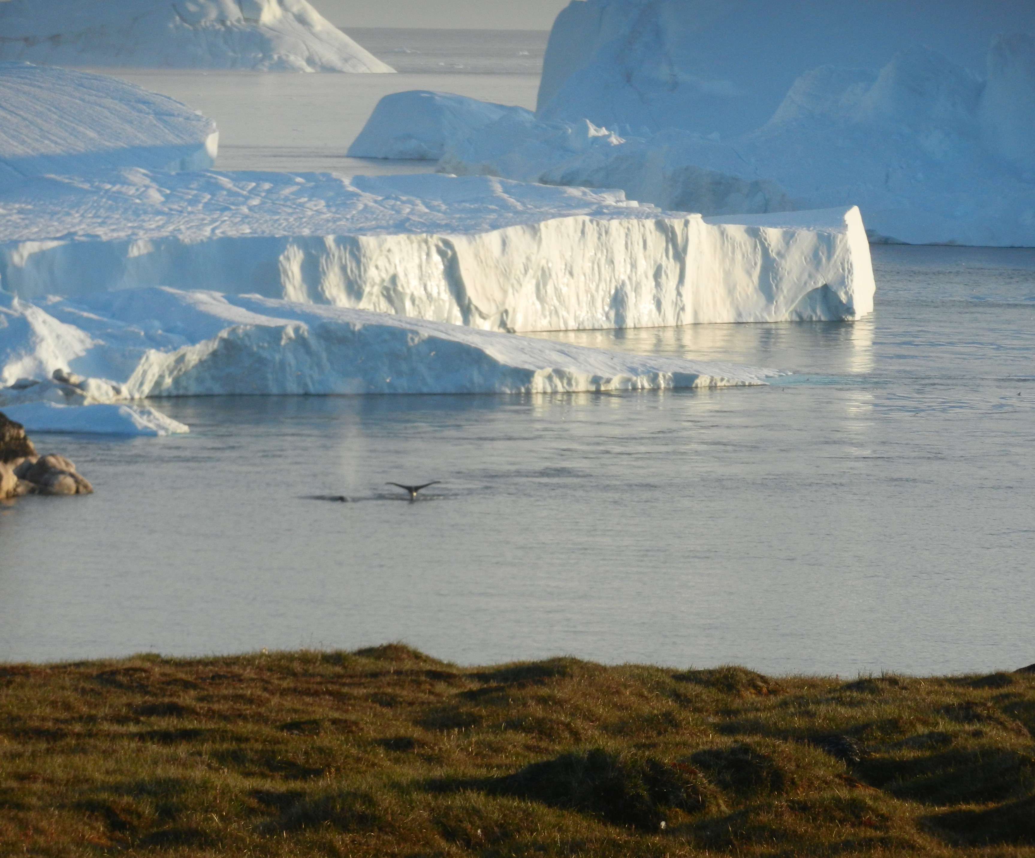 Nowadays, of course, commercial whaling has vanished. Whale is still an essential food source for Greenlanders but it is hunted to strict quotas. Like any of us, the Greenlanders are also in awe of these beautiful creatures and just as likely to watch them swimming in Nuuk Fjord or Disko Bay. I’ve waited a long time to see a whale and so it was an incredible feeling to finally see these magnificent animals at the Ice Fjord in Ilulissat. I was also pleased to see them in the way I wanted to – quietly with just the two of us rather than in a large tourist group. I’m pretty sure we were watching humpbacks, though minkes and fin whales also visit these waters. They are big and yet graceful, slipping through the water in a soft arc, brandishing their large tails. I love the noise they make as they blow. A gentle yet powerful sound which I could hear from my tent 15mins walk away in the middle of the night!