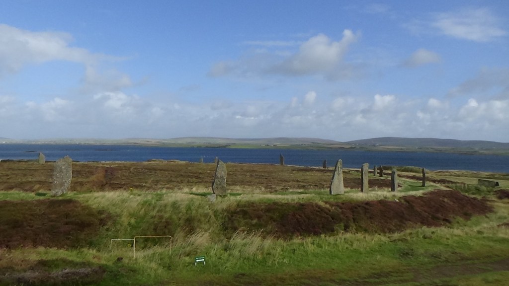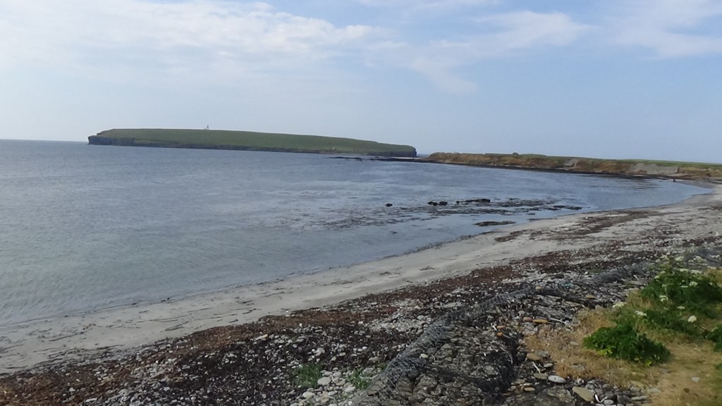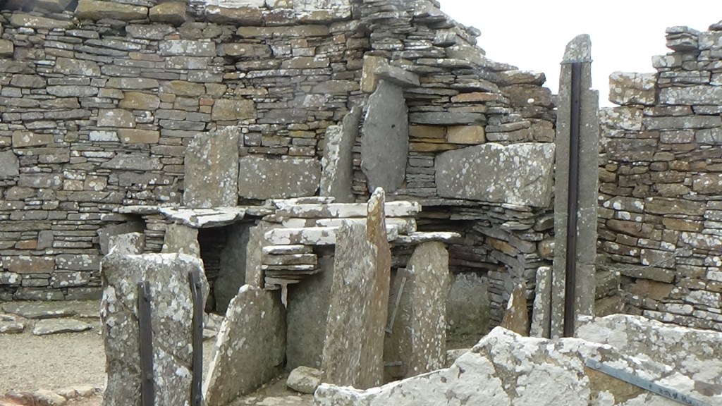 The Broch of Gurness is a remarkable place. Craig had us up bright and early and so we had the privilege of having the site to ourselves, a very special experience. Dating back to the Iron Age, this site, like our programme, also links into later Viking settlements, as the grave of a Viking woman was found at Gurness, along with some grave-goods – a sickle blade and a pair of ‘tortoise’ brooches.