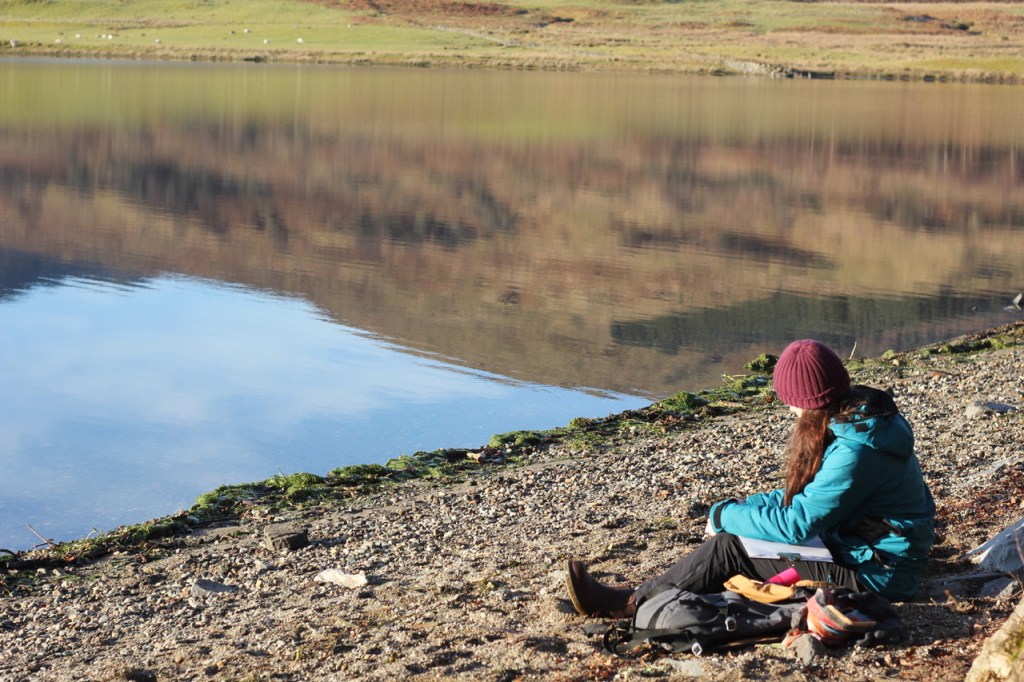 Orla will lead the drawing element of the workshop, exploring intuitive and expressive approaches to sounds and seascapes, using both found objects from the shore line and traditional art materials to create artworks and graphic scores.