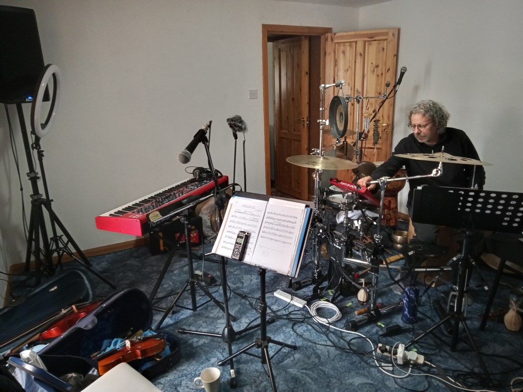 One of the pieces we developed online, suspended sheets, had some quite incredible, metallic sounds. I had a lot of fun responding on the viola d’amore (a new instrument for me at the time) exploring some edgy harmonics, resonances and special effects that blended and complemented the metallic sounds Renzo was producing.