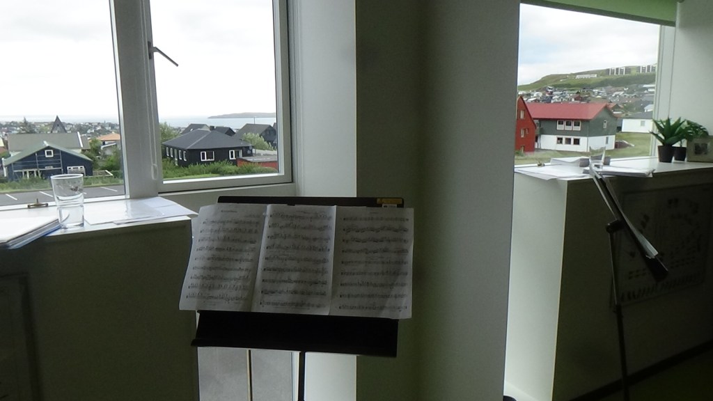And so on 4th September, Anne Bünemann (violin), Robert Digney (clarinet) and I found ourselves on the stunning approach between mountains to Vágar airport. Not for the nervous flyer. (Quick environmental note here: I would dearly love to take the ferry to the Faroes, especially as it passes the tip of Shetland, but unfortunately it takes about 4 days in each direction, two ferry crossings and trains via Holland and Denmark. We really need Smyril line to stop in Shetland again – as it used to decades ago).