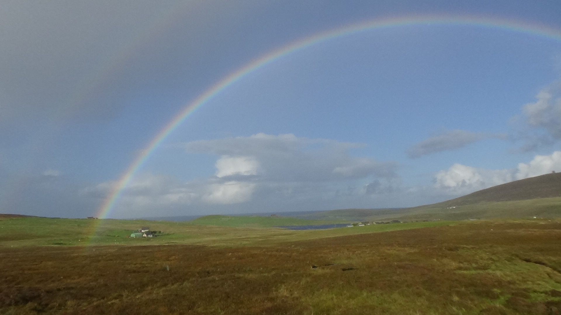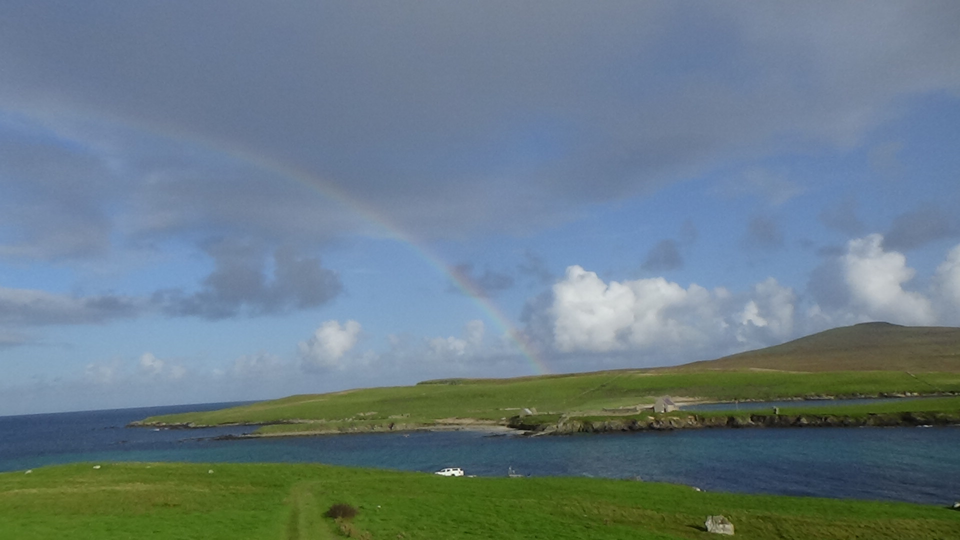 I also cycled across Bressay and spent some time by Noss Sound in the most exquisite autumn light. The sea was a deep blue, the land a mixture of bright greens and vegetation starting to turn brown. A series of convective showers offered a fine and varied display of cloud formations and some full double rainbows.