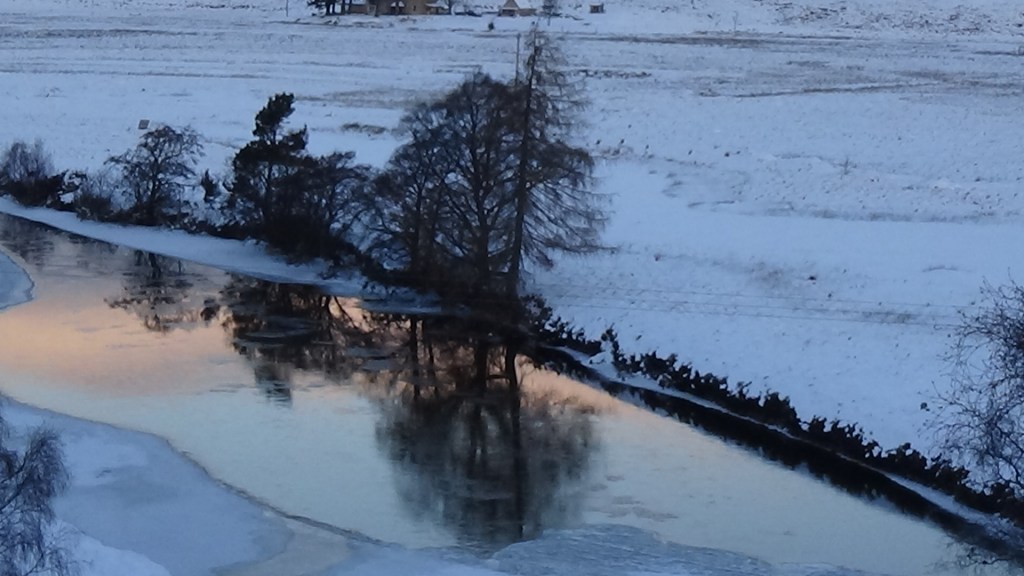 On our final day, we were really grateful to Andrew Braidwood of Braemar Gallery for letting us use his studio as a base as we explored ways of bringing all that we’d seen, heard and learned about into a programme of music. This is always the daunting part for me. I can never just sit down and put things on a page, so I set off in the blue light of a sub-zero morning for a walk in the Morrone Birkwood prior to meeting Pete and Joe to do some thinking, watching as the mountains and river reflected pastel pinks from the sunrise.