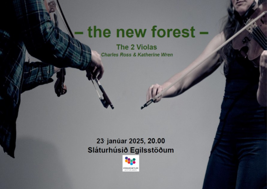 Charles and I have previously performed together as The 2 Violas in Mengi (Reykjavík), Bláakirkjan (Seyðisfjörður) and Egilsstaðir. There’s always a special bit of magic improvising with Charles, extending the range of sound we can draw from our violas and it’s an absolute honour to take -the new forest- “home” following its performance in Nordic Music Days last November.