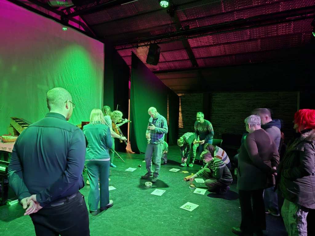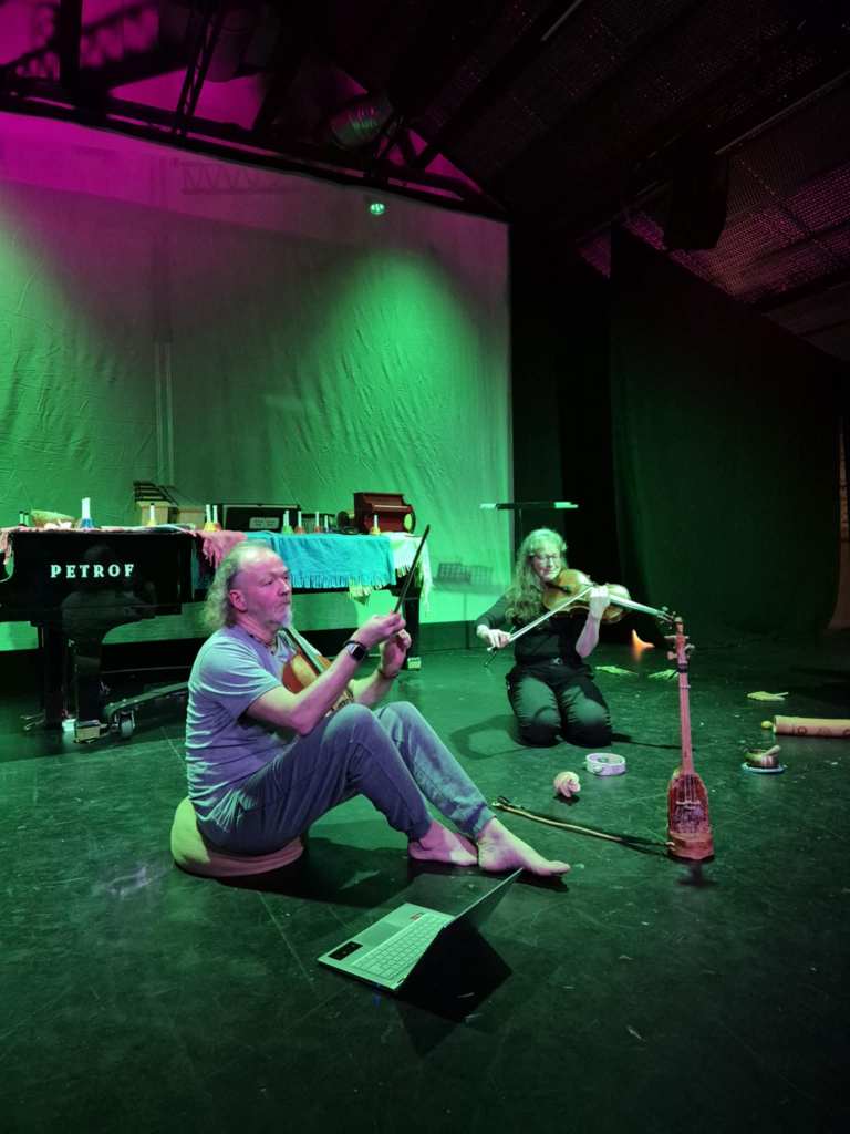 Around this piece we performed a programme of improvised music. For my piece “Lichens” (from “On A Wing and A Prayer” – Morvern) we invited the audience to improvise alongside us on a selection of percussion instruments. I’ve seen this done before, notably in pieces by composer Ruta Vitkauskaite and it’s a great way of bringing an audience into the creative process behind an improvisation. We finished the performance with an improvisation inspired by the gentle calls of whooper swans recorded at Tjörnin in Reykjavik with Charles on the beautiful and delicate Siberian fiddle and added vocals.