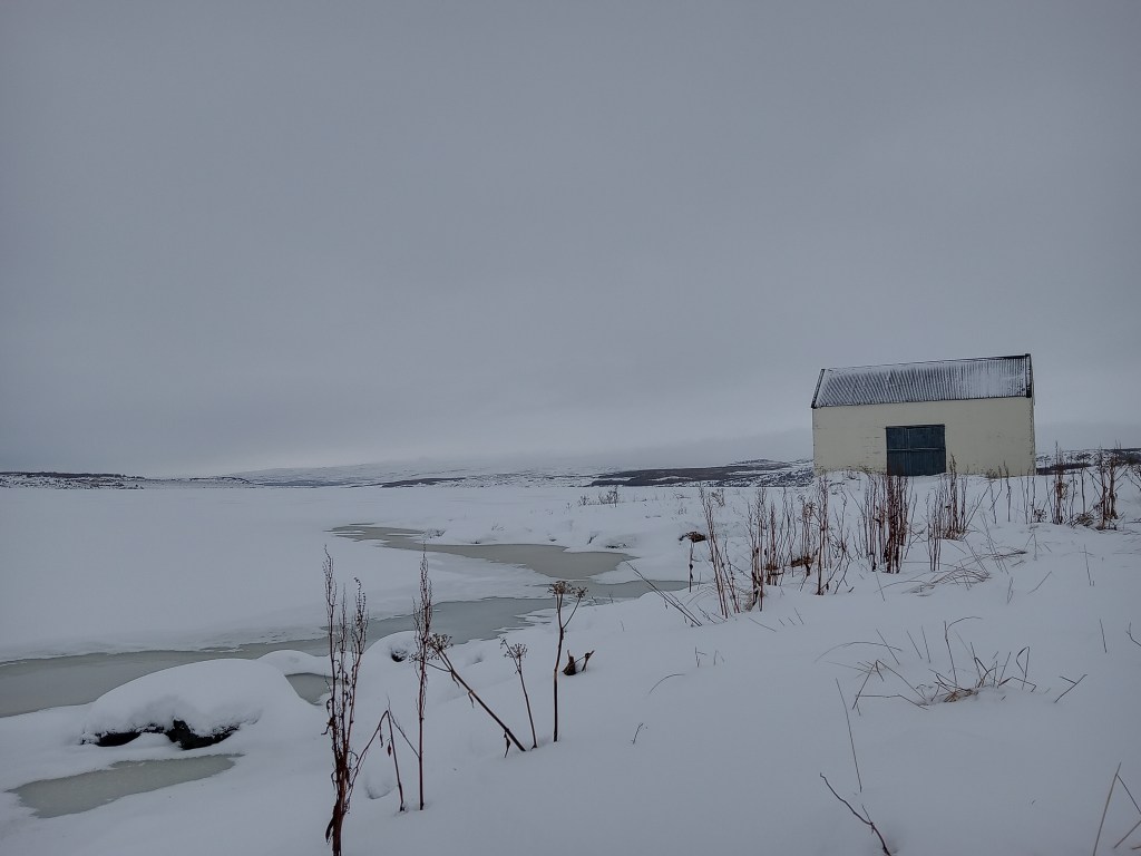 The delay also brought the benefit of flying over Vatnajökull glacier in daylight. We didn’t have the best visibility but I could see rings of cloud condensing over some of the calderas up there and I never tire of seeing the mighty rivers that pour from the glacier, their multiple braids converging into one huge river which then feeds the Lagarfljót, the huge loch by Hallormstaður and Egilsstaðir that holds endless fascination for me with its milky green depths said to be home to a monster! In fact the first thing I always do on arrival is pop down to this picturesque hut on the lakeside: