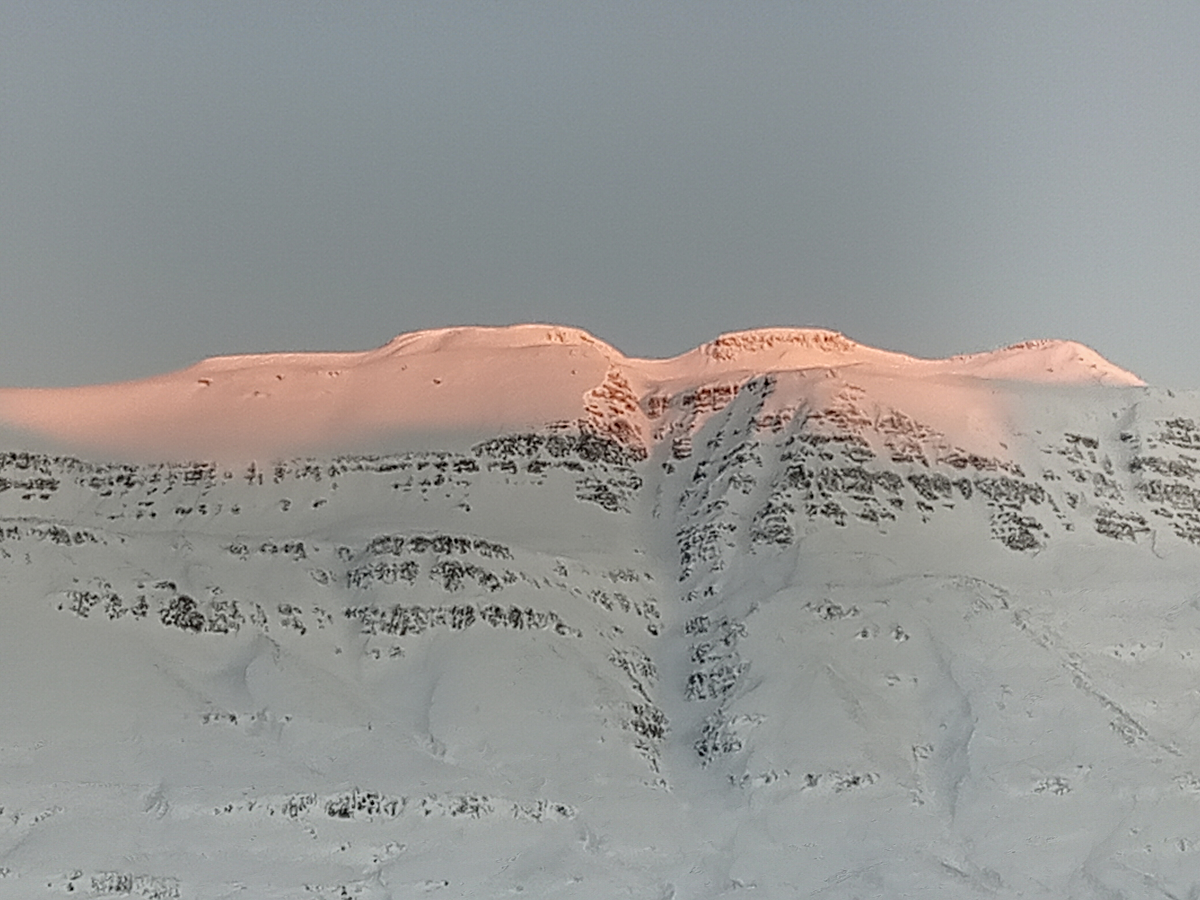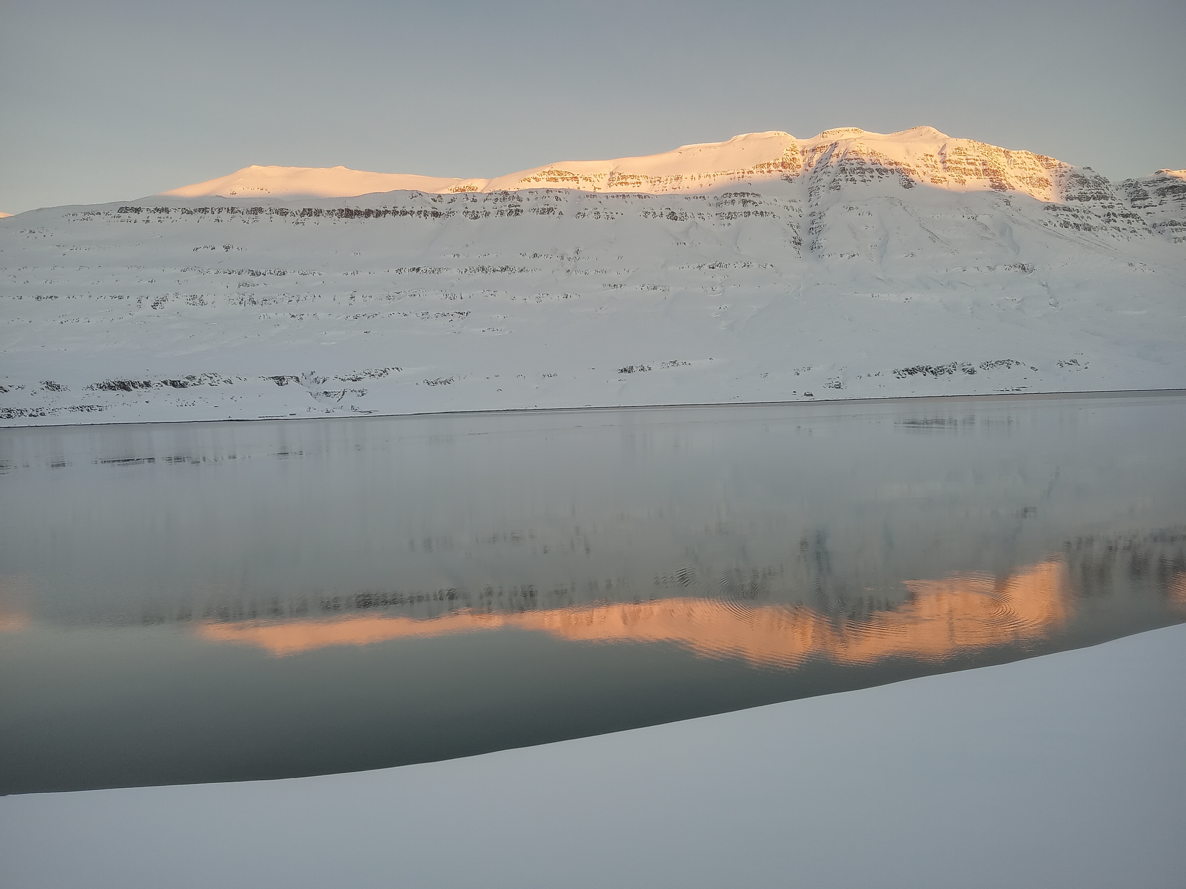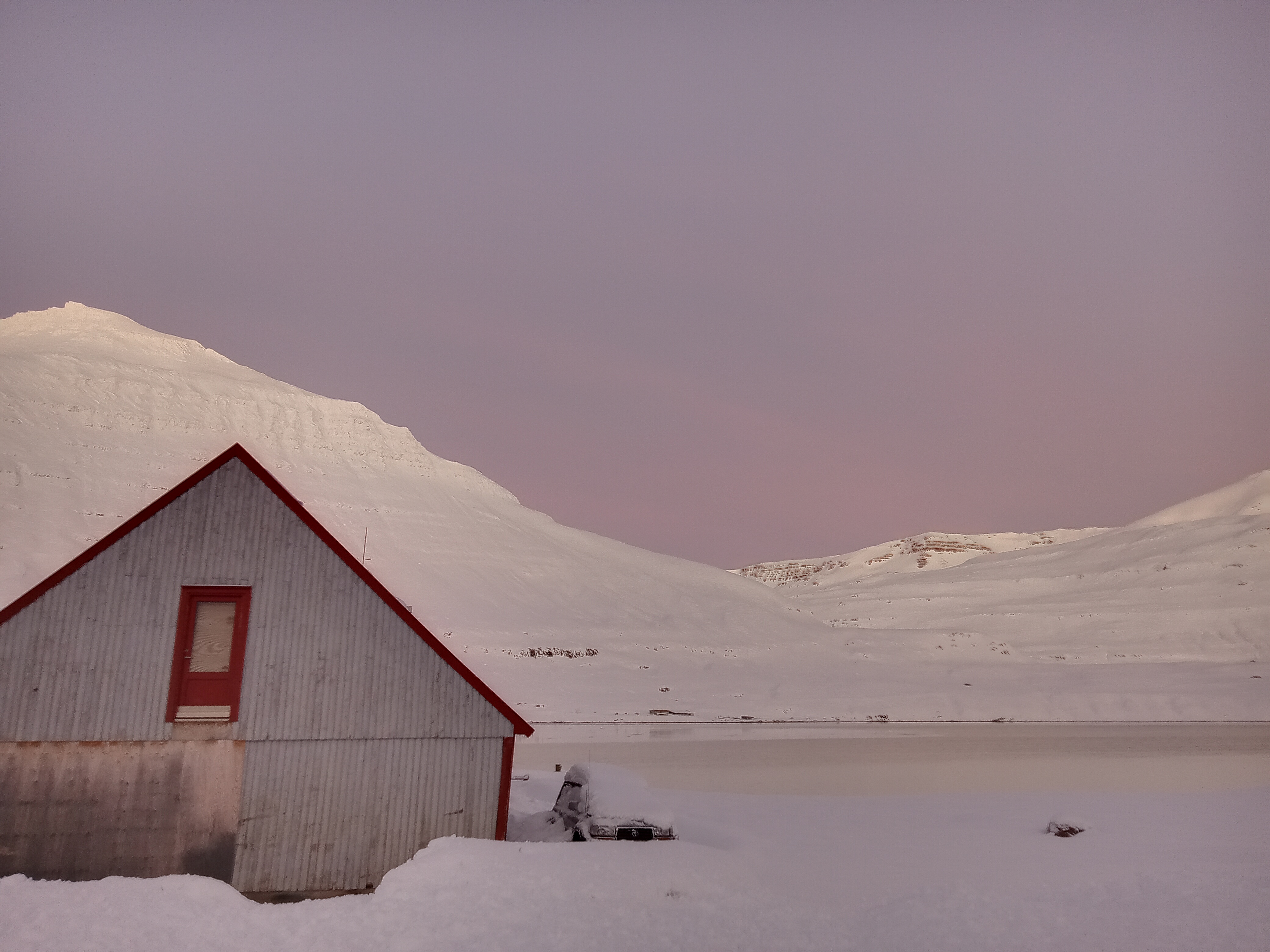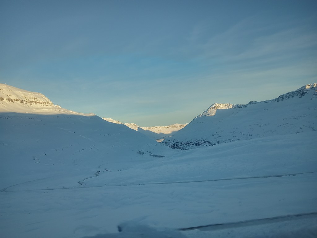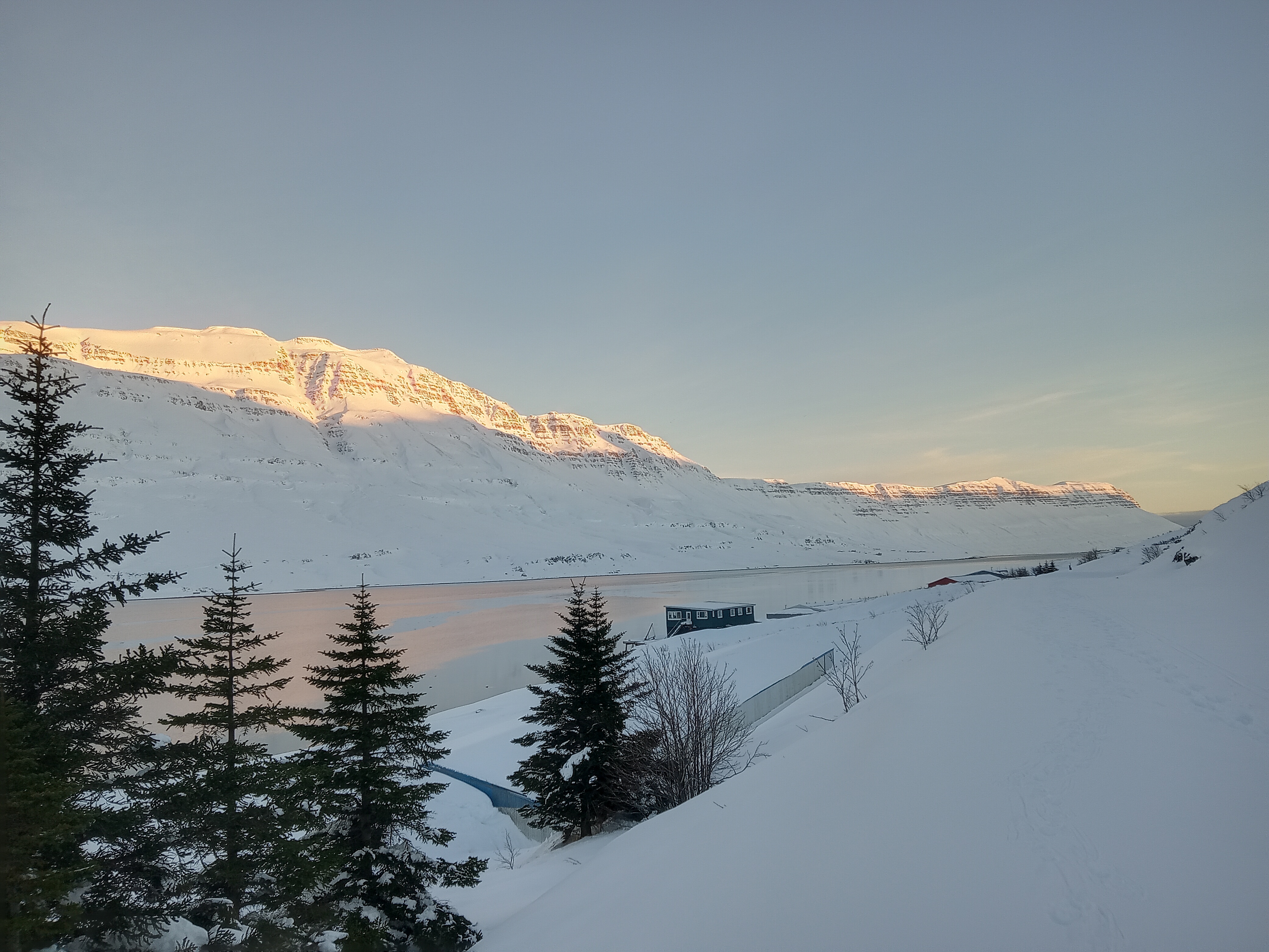 The sun never reaches town between November and February. It’s not dark, but at the same time, it’s magic to pop back over the pass at 3pm and see the Fljótsdal in brilliant sunshine.