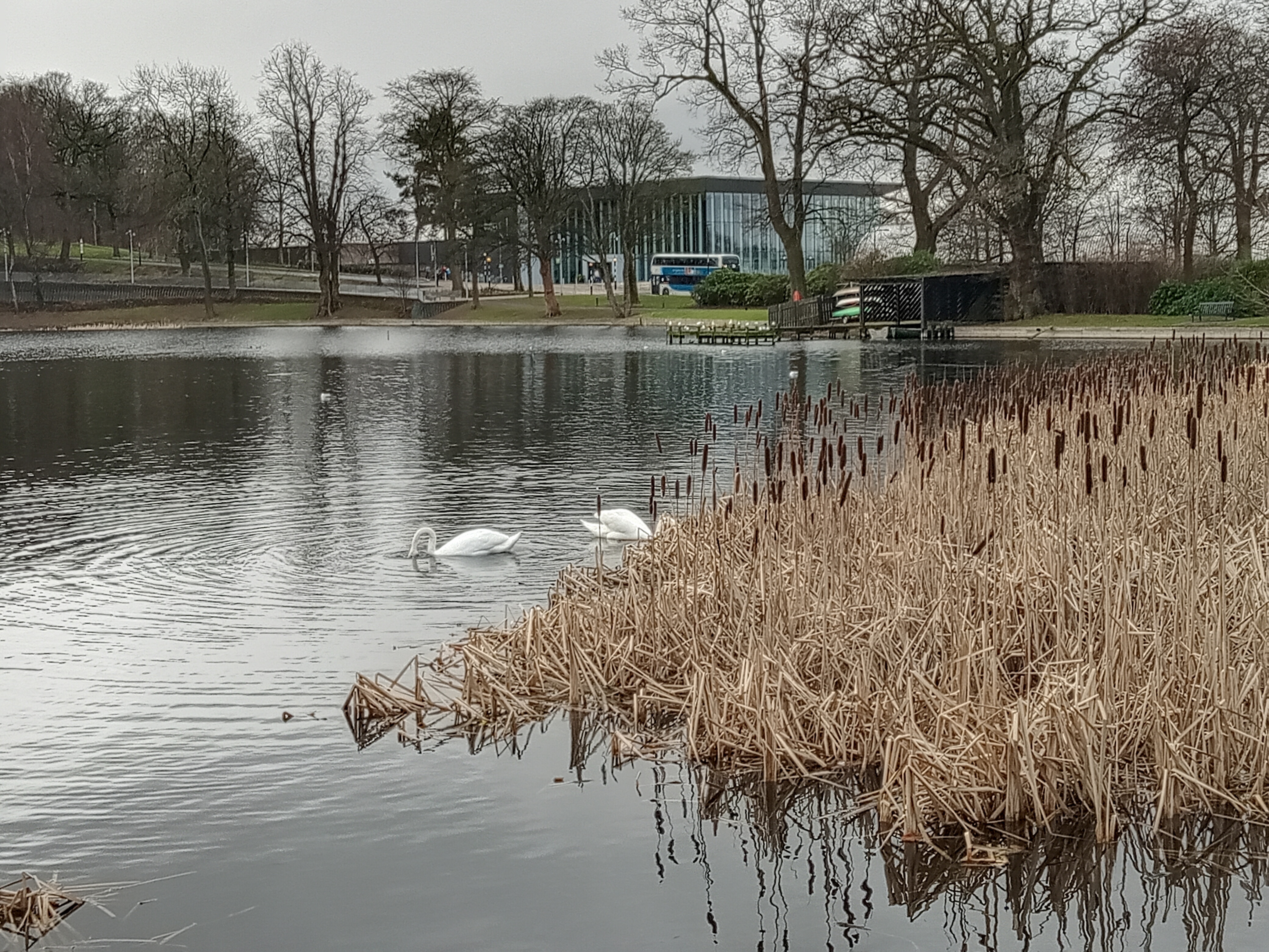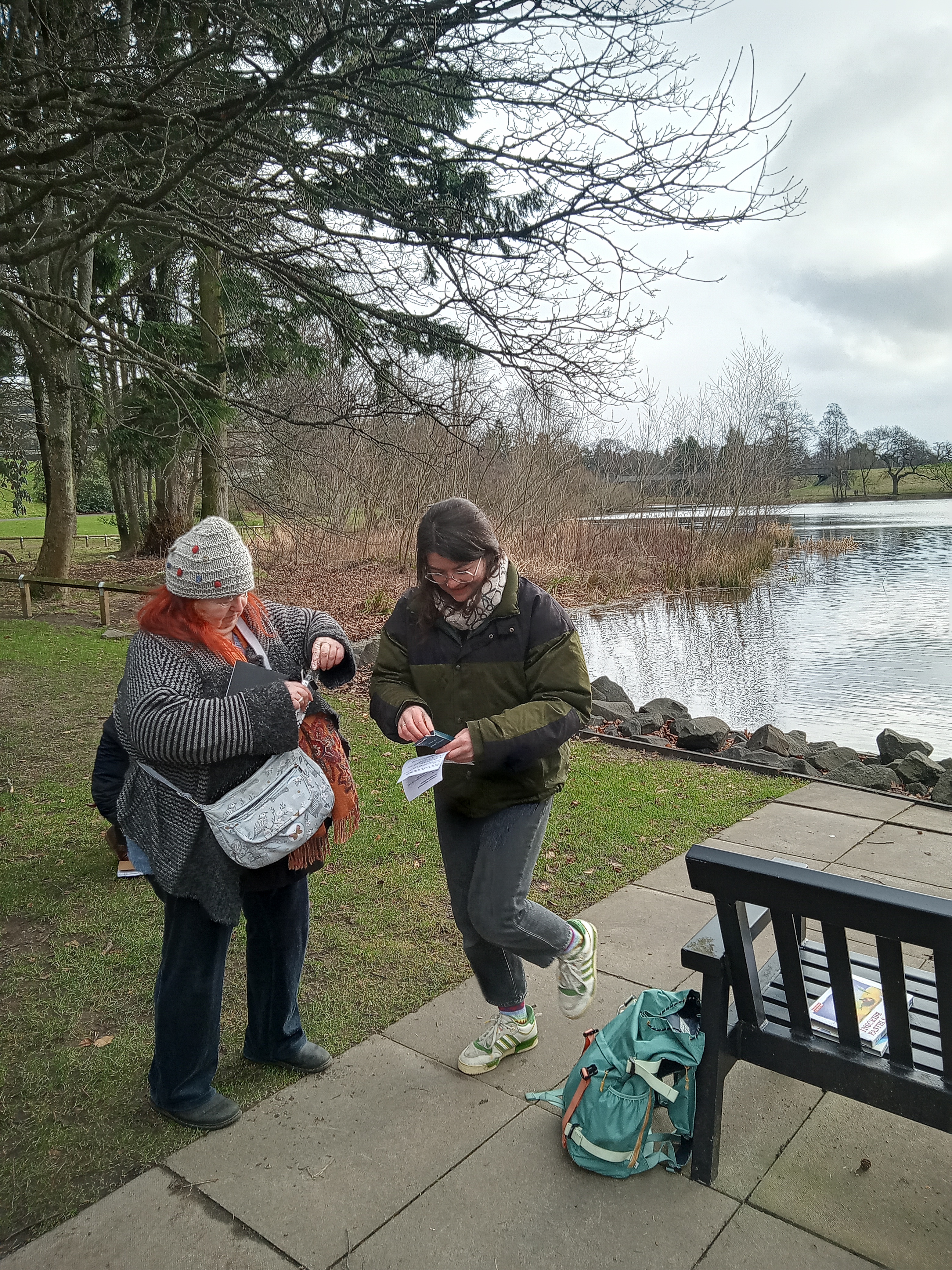 We had a lot of fun along the way. Inspired by Pete’s prompts to hear the music in everything and to think about sound creatively, we had some playful pops from the hockey pitch at Stirling University and the gentle patter of rain on a goretex, recorded close to, as well as the expected birdsong and water sounds. In Dunblane, the playpark produced a rich and playful piece of sound art and Matilda helped us improvise a piece that slickly transitioned from peaceful birdsong and the wind in the trees to the raucous sound of a chainsaw clearing up after the winter storms.